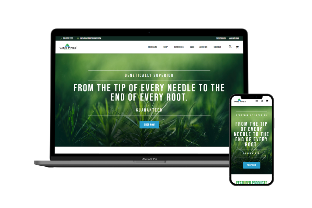 I redesigned Vans Pines Nursery’s e-commerce website, modernizing a data-heavy, print-first catalog for mobile-first users. Key work included redesigning complex product tables with an accordion pattern for at-a-glance mobile comparison, clarifying confusing program (purchasing format) information through visual hierarchy and imagery, and building a familiar e-commerce browsing experience with species and growing-condition filtering.